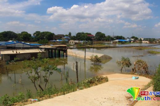 5號(hào)上午,黃興鎮(zhèn)高塘村村口仍有多處房屋泡在水中。中國(guó)青年網(wǎng)記者 劉利影攝
