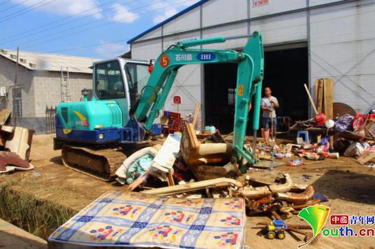 高塘村村民處理被水泡過(guò)的廢棄家具。中國(guó)青年網(wǎng)記者 劉利影攝
