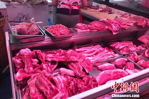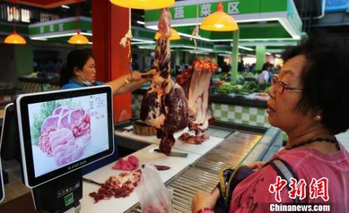 北京西城區(qū)露園百姓生活服務(wù)中心的豬肉銷售攤販。中新網(wǎng)種卿 攝