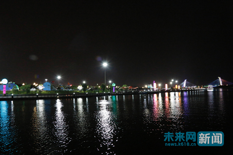 未來網(wǎng)(www.k618.cn)鄂爾多斯7月16日電(記者 楊佩穎)在鄂爾多斯烏蘭木倫河乘著觀光游艇,欣賞著五光十色的燈光掩映下的華麗炫目的夜景,感受別樣的康巴什。