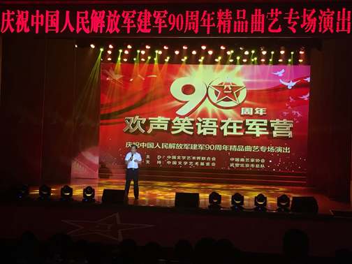 央廣網(wǎng)北京7月24日消息 為迎接中國(guó)人民解放軍90華誕,7月22日,中國(guó)文學(xué)藝術(shù)界聯(lián)合會(huì)、中國(guó)曲藝家協(xié)會(huì)共同在武警北京市總隊(duì)舉辦“歡聲笑語(yǔ)在軍營(yíng)”——慶祝中國(guó)人民解放軍建軍90周年精品曲藝專(zhuān)場(chǎng)演出。邀請(qǐng)長(zhǎng)期活躍在部隊(duì)基層舞臺(tái)和曾經(jīng)為部隊(duì)文藝事業(yè)做出突出貢獻(xiàn)的曲藝名家和優(yōu)秀演員,懷著濃濃的軍旅情懷和對(duì)人民軍隊(duì)的永恒熱愛(ài),在建軍節(jié)即將到來(lái)之際,為武警官兵送上精彩的曲藝節(jié)目,同大家一起重溫激情燃燒的歲月,同大家一起鑄就強(qiáng)軍興軍的輝煌。