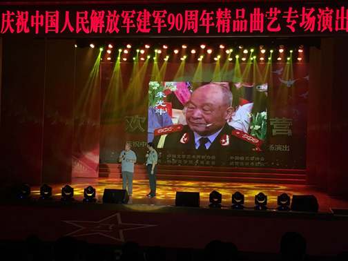 在演出的間隙,現(xiàn)場(chǎng)還采訪了老一輩軍隊(duì)曲藝工作者朱光斗,在建軍90周年之際,他向我們介紹了常年甚至畢生用曲藝服務(wù)官兵的一大批曲藝名家,例如犧牲在朝鮮戰(zhàn)場(chǎng)的常寶堃烈士,故去的山東快書(shū)藝術(shù)家高元鈞大師,還有劉洪濱、劉學(xué)智、葉景林、常寶華、常貴田、李立山等部隊(duì)曲藝工作者;采訪了曾經(jīng)在部隊(duì)服役的中國(guó)鐵路文工團(tuán)著名相聲演員奇志,他為我們介紹了一大批大家經(jīng)常看到,但不知道他們?cè)?jīng)有過(guò)當(dāng)兵歷史的曲藝家牛群、劉亞津、張大禮、曹隨風(fēng)、李丁等;還采訪了子弟兵家屬的代表,王巖同志的母親劉蘭芳,常年組織帶領(lǐng)藝術(shù)家到基層部隊(duì)送歡笑,和戰(zhàn)士們一起過(guò)年過(guò)節(jié),給戰(zhàn)士們送去歡笑和祝福;還采訪了常年到基層慰問(wèn)演出的年輕曲藝工作者代表魏鵬,他和全軍曲藝工作者一起,發(fā)揮曲藝輕騎兵作用,堅(jiān)持為兵服務(wù)。