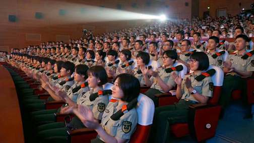 “歡聲笑語(yǔ)在軍營(yíng)”演出現(xiàn)場(chǎng)官兵熱情鼓掌