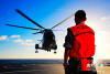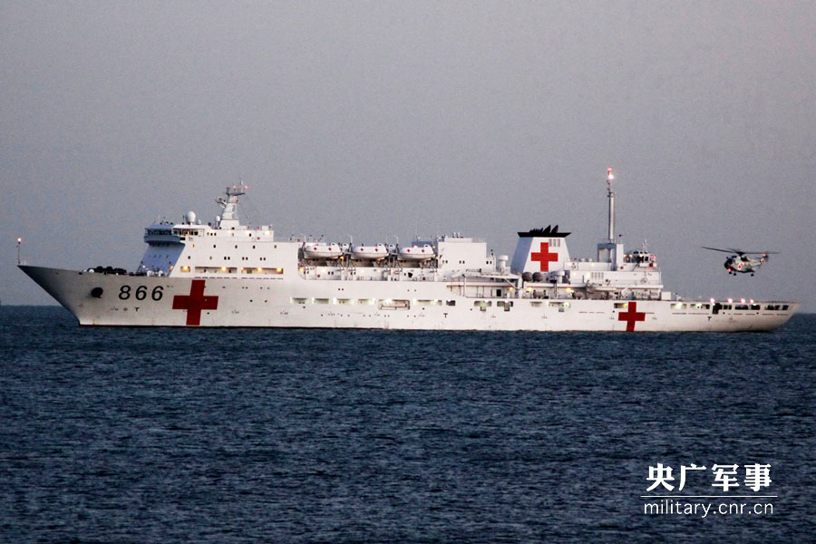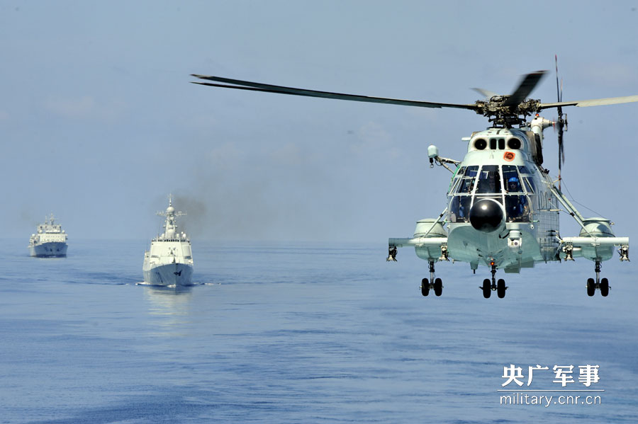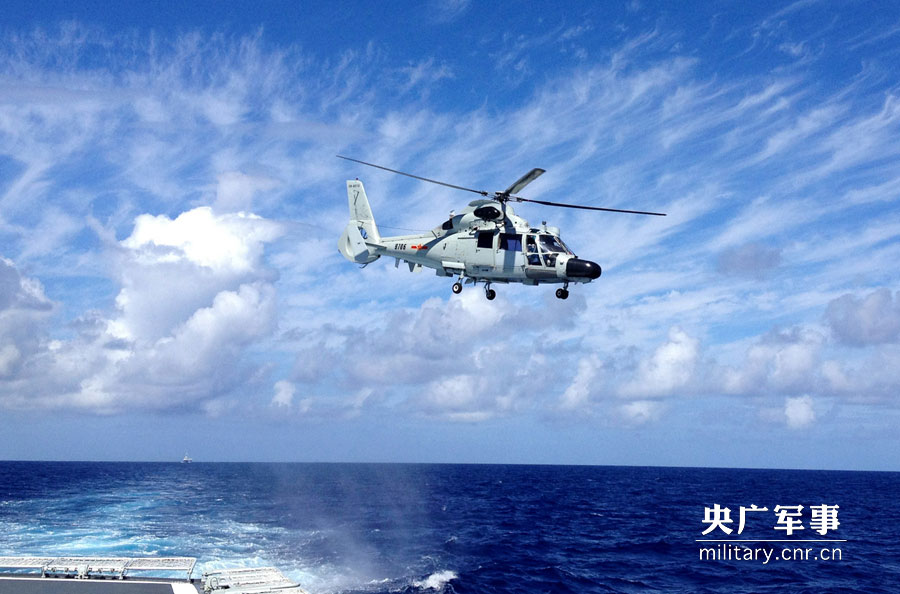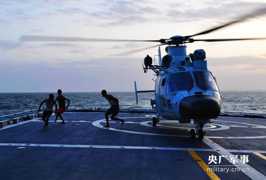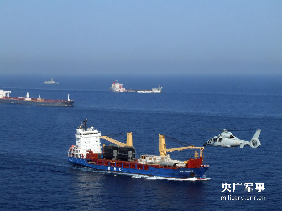 艦載直升機正在為亞丁灣各國商船保駕護航。