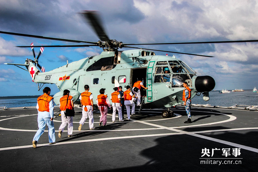 海上緊急出動。 冒險接護被劫570天船員,獲救時最瘦只剩39斤 太平洋、印度洋、大西洋;亞丁灣、比斯開灣、加勒比!粡垬俗⒃搱F數(shù)十項重大任務(wù)航線的世界地圖,讓記者對中國海軍走向深藍的漫漫征程一目了然。 在第十二批護航中,程文剛機組臨危受命,接護被海盜劫持570多天的臺灣“旭富一號”漁船的26名獲釋船員。接護地點位于索馬里海岸,需要深入索馬里海盜老巢。 “那時,海上風浪漸大,拍岸浪達5、6米,又是在異國陌生海域。天漸漸黑了下來,四周可能還隱藏著兇猛的海盜,這完全不符合著陸條件。”飛行員程文剛告訴記者,更為困難的是,海灘上全是砂石,無法搜索到著陸點。 降還是不降?舷窗外的光線已經(jīng)開始變暗了,程文剛一咬牙,果斷利用海水漲退間隙,在約10米寬的潮濕沙灘上,采取半米懸停、右輪軟接地方式,先后飛行6個架次,安全救援了26名中外被劫船員。 “我們接到他們的時候,每個船員都是衣衫襤褸,最瘦小只有39斤,其他人差不多也只有70多斤了。”程文剛說,當時在直升機上噪聲太大,船員們說了什么他已經(jīng)聽不清了,但當他回過頭,看到那些熱淚盈眶的感激眼神,便覺得這次險冒得值。 這次營救,程文剛機組共同創(chuàng)造了首次在大風浪、高海況、陌生異國海域使用直升機接護船員和首次暗夜無燈光引導陌生區(qū)域選擇野外著陸場懸停等護航史上8個第一。