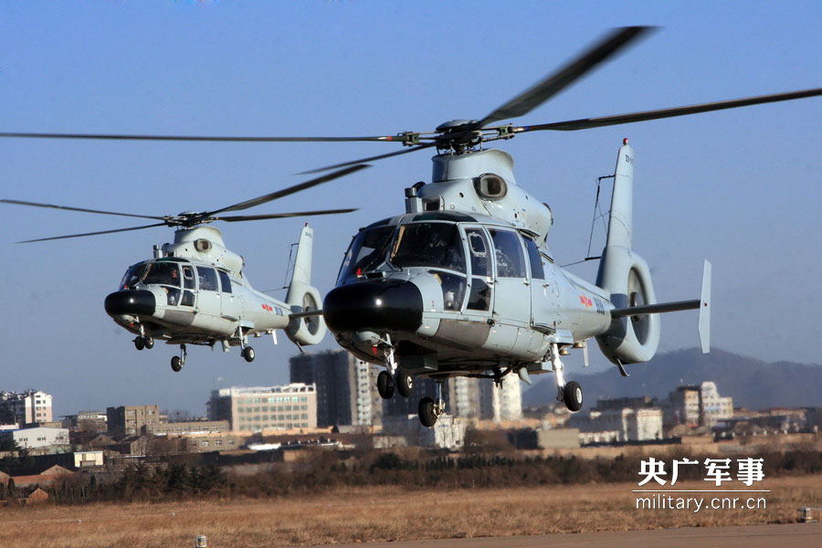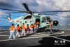 戰(zhàn)鷹歸巢,直九直升機進行夜間海上訓練。