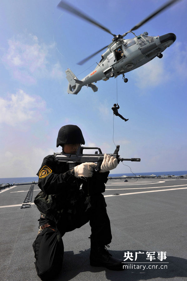 直九直升機與特戰(zhàn)隊員進行戰(zhàn)術(shù)合練。