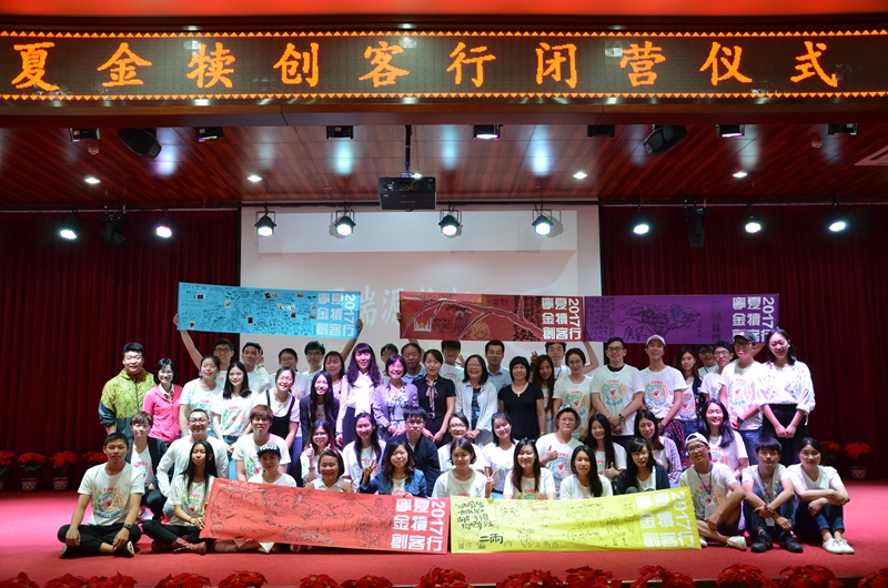 在閉營儀式上,來自兩岸的45位同學(xué)分為5組,分別向大家展示了他們自己拍攝并剪輯制作的3分鐘短視頻,短視頻里記錄了過去一周大家從相識到相知的感動瞬間,引得在場同學(xué)幾度落淚。此外,每個小組還集思廣益,繪制了個性鮮明的創(chuàng)意手幅。