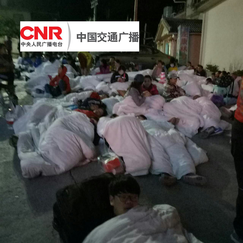當前,為防止余震次生災害,旅行社正找空曠地段安頓游客,車內(nèi)的游客對劫后余生感到欣慰之余,也通過各種渠道關注著九寨溝景區(qū)內(nèi)游客的安危。記者發(fā)稿時,李嬌表示部分游客已經(jīng)休息,她和同事在值夜,以便突發(fā)情況,第一時間做出反應。