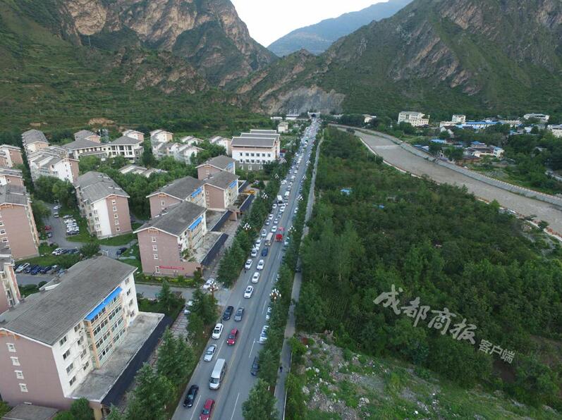 九寨溝縣地震后的第一個清晨,成都商報記者對縣城進行了航拍,從航拍圖片和視頻來看,目前縣城建筑基本完好,秩序井然。