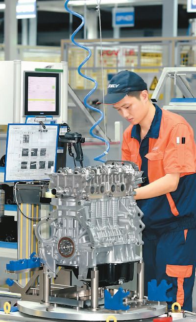 新常態(tài)下,浙江省義烏市堅(jiān)持供給側(cè)結(jié)構(gòu)性改革主線,在新興產(chǎn)業(yè)上做“加法”。圖為8月1日,工人們在吉利動力系統(tǒng)義烏制造基地的生產(chǎn)流水線上組裝鋒銳發(fā)動機(jī)。
