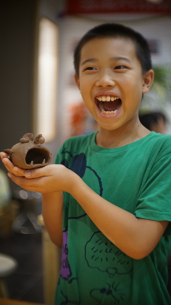 活動(dòng)中,孩子和家長們還學(xué)習(xí)了陶瓷上色的方式以及釉上彩和釉下彩的區(qū)別,在備受期待的實(shí)踐制陶瓷環(huán)節(jié),小朋友們非常投入,創(chuàng)意十足,捏制出了五花碗、坦克和各種活靈活現(xiàn)的小動(dòng)物,還有意境悠遠(yuǎn)的撐船人與烏篷船。小小一件陶塑,反映出孩子們充滿童趣和想象力的內(nèi)心。