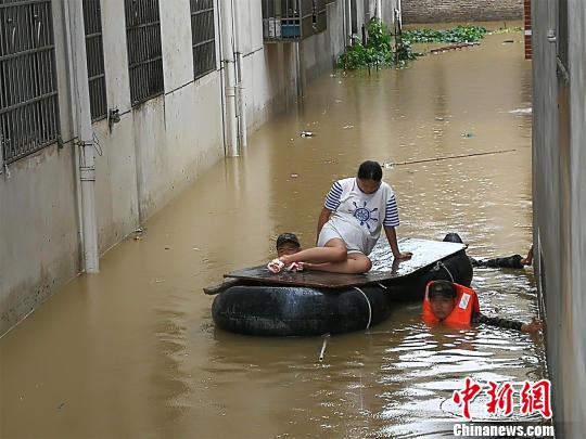 暴雨導(dǎo)致咸寧多地發(fā)生洪澇災(zāi)害。14日6時23分,咸寧市咸安區(qū)消防中隊(duì)接到報警稱,咸寶路淦水新村15棟與水果市場附近有人被困,消防官兵攜橡皮艇、救生繩索以及救生衣等裝備,前往營救。救援過程中,由于積水達(dá)1.6米左右,消防官兵采取將木板擱置在橡皮艇上,人在水中推行的方式,將一名懷孕9個月孕婦及老人等共14名被困人員安全轉(zhuǎn)移。