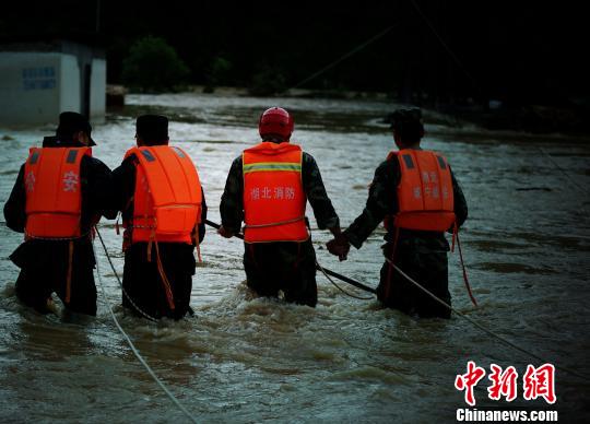 消防官兵涉水營救被困人員!≈煅嗔 攝