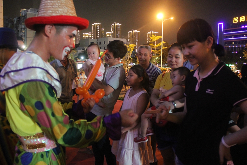 精彩的廣場舞展現(xiàn)出了老年人健康的體魄和樂觀的心態(tài)。據(jù)舞蹈隊(duì)的宋老師介紹,他們的隊(duì)友基本都是60歲以上的退休老人了,練功跳舞讓他們的很多“老年病”都沒了。除了菲律賓樂隊(duì)為廣場舞愛好者奏樂,活動現(xiàn)場,來自廈門靈玲國際馬戲城的卡通人偶、逗趣小丑也前來助陣,大小孩子們與人偶、小丑玩得不亦樂乎。