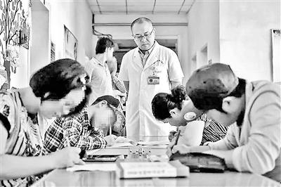 據(jù)張英棟的助理熊女士介紹,入院的患者大多需要考試,科內(nèi)的考試多為零散的方式,有一次兩個(gè)人考試,也有同時(shí)八個(gè)人一起考試的時(shí)候,隨時(shí)來(lái)隨時(shí)考。因?yàn)閺堄濁t(yī)生較忙,考試的題都是科室內(nèi)的其他醫(yī)生出,其他醫(yī)生進(jìn)行判卷的。