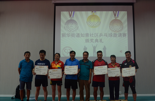 參加本次乒乓球比賽的共107人,分為單打和團(tuán)體賽。選手們熱情高漲,參賽選手一早就來到乒乓球館進(jìn)行賽前熱身運(yùn)動。比賽在眾多勢均力敵的運(yùn)動員之間進(jìn)行,參賽居民全神貫注,現(xiàn)場氣氛活躍,“好球”聲不斷。直拍、橫拍、扣球、旋轉(zhuǎn)球、弧線球等精彩紛呈,充分印證了“高手在民間”,F(xiàn)場充滿了“友誼第一,比賽第二”的友好氛圍。團(tuán)體賽中,隊員之間的相互配合和鼓勵,讓人們見識到什么才是集體的力量。在全體參賽者、裁判員和工作人員的努力下,邀請賽取得圓滿的成功。個人賽評選出一、二、三等獎共4名獲獎?wù),團(tuán)體賽評選出冠軍、季軍、亞軍共16名獲獎?wù)摺8魑活I(lǐng)導(dǎo)為獲獎?wù)哳C獎。