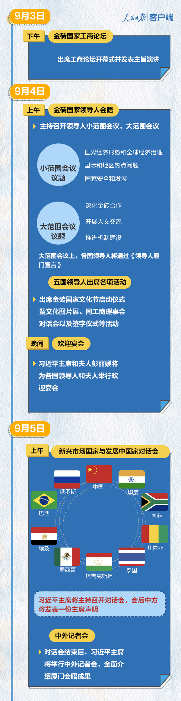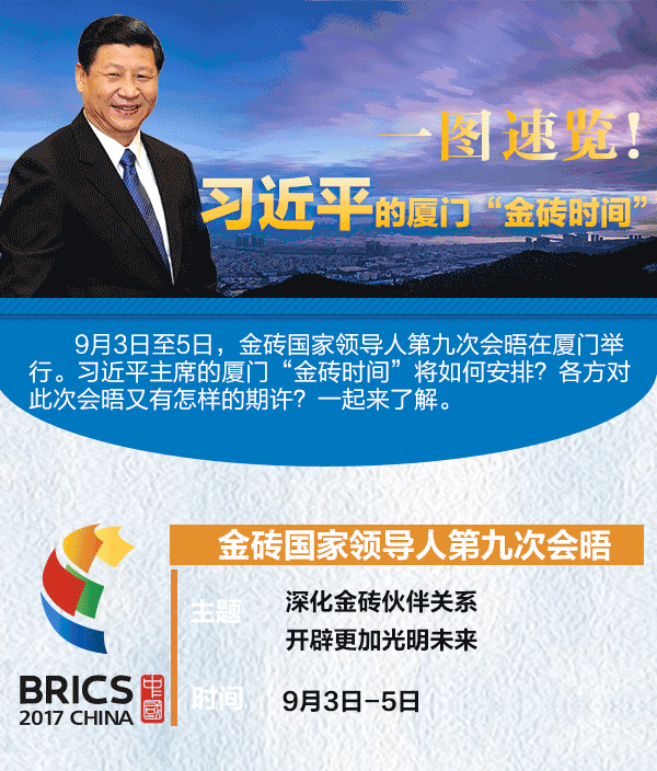 9月3日至5日,金磚國家領(lǐng)導人第九次會晤在廈門舉行。習近平主席的廈門“金磚時間”將如何安排?各方對此次會晤又有怎樣的期許?