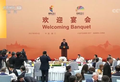 金磚國家領(lǐng)導人第九次會晤歡迎宴會:習近平主席致辭