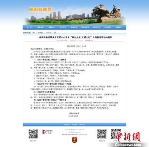 咸陽市教育局關于開展中小學生“遵守交規(guī) 文明出行”專題教育活動的通知!【W(wǎng)站截圖 攝