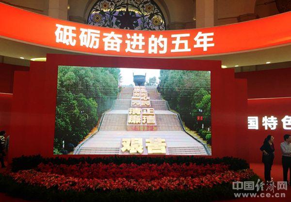 “砥礪奮進(jìn)的五年”大型成就展序廳。經(jīng)濟(jì)日?qǐng)?bào)-中國經(jīng)濟(jì)網(wǎng)記者 王惠綿攝