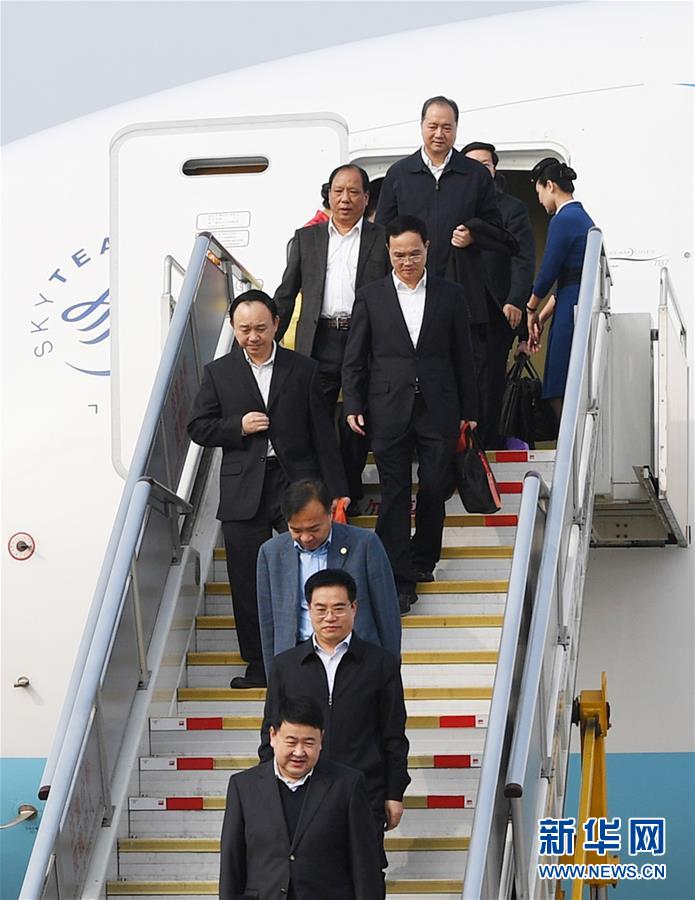 10月15日,來自福建省的黨的十九大代表乘飛機抵達首都國際機場。新華社記者 申宏 攝
