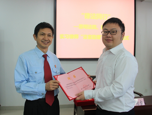 廈門市思明區(qū)人民法院傅遠平院長向首批法官助理頒發(fā)聘任書陳小芬攝