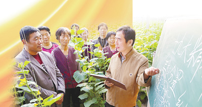 “大棚講堂”,黨員干部為菜農(nóng)們解讀十九大報(bào)告中的惠農(nóng)政策。