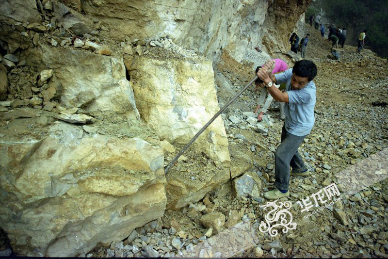 那年底,巫山縣農(nóng)業(yè)局局長(zhǎng)朱崇軒帶人到竹賢鄉(xiāng)調(diào)研,從下午走到天黑,最后困在了下莊的108道拐上面,被村民接了下去。第二天,朱崇軒來(lái)到下莊修路現(xiàn)場(chǎng),在雞冠梁,看到一個(gè)個(gè)赤裸上身的精壯漢子,聽(tīng)著一聲聲震耳欲聾的開(kāi)山炮響,被村民用生命挑戰(zhàn)懸崖的行動(dòng)震撼了。隨后,農(nóng)業(yè)局給村里提供了炸藥、雷管、導(dǎo)火線(xiàn)等價(jià)值10萬(wàn)元的三材物資,還準(zhǔn)備了一批鋼釬、大錘,一路送到下莊村口。這批物資讓下莊人吃了“定心丸”,甚至感覺(jué)已經(jīng)可以看到通路的那一天。