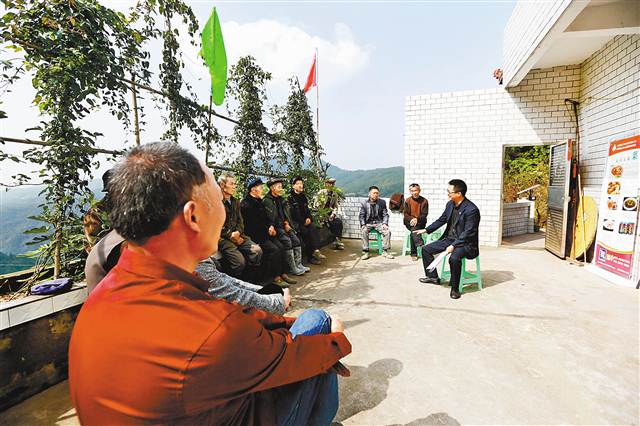 楊大可(右一)結(jié)合身邊實(shí)際,向村民宣講十九大精神。 (云陽(yáng)報(bào)社供圖)