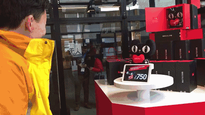 觀眾對(duì)著儀器上的展臺(tái)微笑,通過生物識(shí)別技術(shù),儀器會(huì)根據(jù)臉部表情對(duì)笑臉進(jìn)行分級(jí),并給出不同折扣