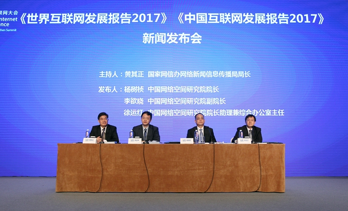 12月4日,《世界互聯(lián)網(wǎng)發(fā)展報告2017》《中國互聯(lián)網(wǎng)發(fā)展報告2017》新聞發(fā)布會在浙江烏鎮(zhèn)舉行。中國網(wǎng)信網(wǎng) 焦鵬 攝