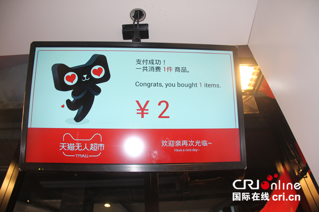 在超市出口處,支付屏幕提醒記者“看鏡頭”,并且自動(dòng)識(shí)別了記者手上的礦泉水,建立了“我的水”、“我的臉”和“我的錢(qián)”之間的聯(lián)系。幾秒鐘的功夫,支付成功,自動(dòng)門(mén)打開(kāi),首次無(wú)人超市購(gòu)物之旅圓滿結(jié)束。