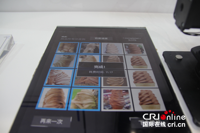 百度展廳主打“人工智能”牌。記者決定跟百度機(jī)器人比較一下“圖像識(shí)別”的速度。比賽主題:找出所有沙皮狗。