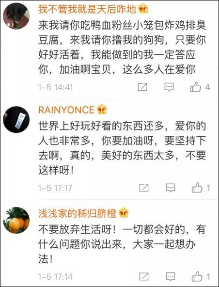 網(wǎng)友們希望,哪怕博主再稍微看一眼微博,也會(huì)發(fā)現(xiàn),這個(gè)世界并沒(méi)有想象中的那么糟,還有這么多人在關(guān)心著她。