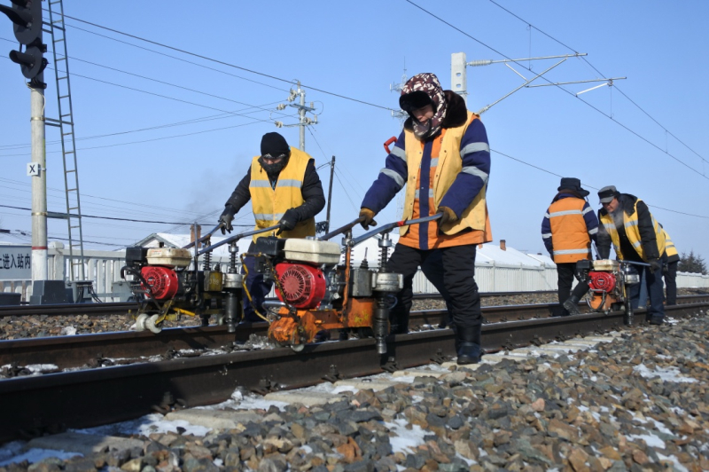 近日,受寒潮影響,黑龍江省尚志市氣溫突破零下30攝氏度,承擔(dān)養(yǎng)護(hù)任務(wù)的哈爾濱鐵路局牡丹江鐵路工務(wù)段的職工冒著嚴(yán)寒,全員上崗,每天持續(xù)在戶外工作五六個小時,全面巡查鐵軌狀態(tài),及時排除凍害、積雪,為即將到來的鐵路春運(yùn)提供保障。這些“鐵軌醫(yī)生”說,鐵路運(yùn)輸?shù)陌踩婕扒Ъ胰f戶,一時一刻不允許放松懈怠,再苦再累再難也要堅守崗位。