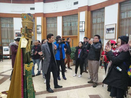 朱家可館長帶采訪團(tuán)一行參觀三星堆博物館
