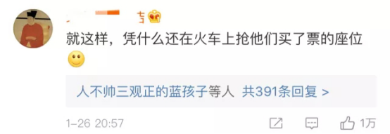 這位網(wǎng)友說(shuō):“就這樣,憑什么還在火車(chē)上搶他們買(mǎi)了票的座位?”