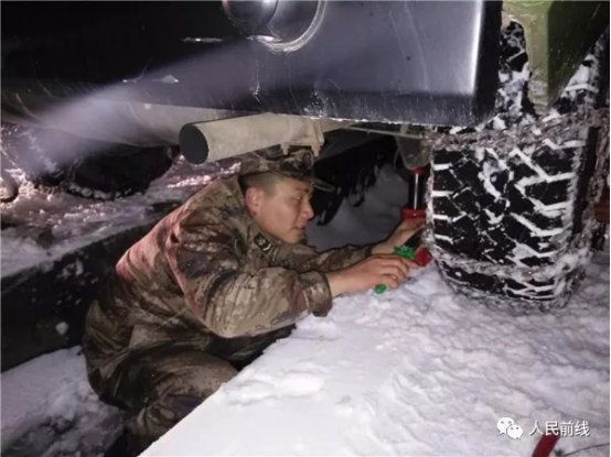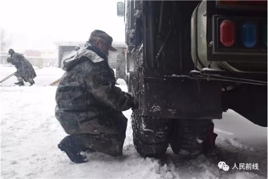 ▲第71集團(tuán)軍某合成旅迅速啟動(dòng)應(yīng)急方案,檢查并禁錮車(chē)輛防滑鏈。