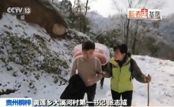 從楠木壩組到黃蓮鄉(xiāng)政府所在地有5公里,路面已經(jīng)出現(xiàn)凝凍,兩位干部也早早來幫忙,走了3個多小時才到達目的地。