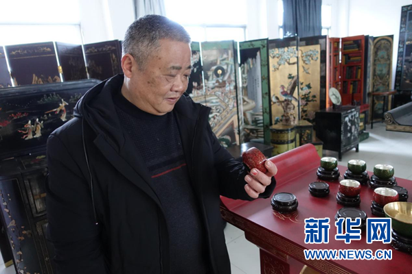新華網(wǎng)黃山2月23日電(卓越)漆器,即用漆涂在各種器物的表面上所制成的日常器具及工藝品、美術(shù)品,是中國古代在化學(xué)工藝及工藝美術(shù)方面的重要發(fā)明。福州脫胎漆器,廈門髹金漆絲漆器,廣東暈金漆器,揚州螺鈿漆器,北京剔紅漆器......在眾多地域制漆技藝中,徽漆作品更以其復(fù)雜的工藝、豐富變幻的肌理受到世人的關(guān)注,并被收入國家非物質(zhì)文化遺產(chǎn)名錄。春節(jié)期間,跟隨“非遺”傳承人、黃山市徽漆工藝有限公司總經(jīng)理奚建輝一起,記者近距離感受了徽漆工藝那古老而神奇的魅力。