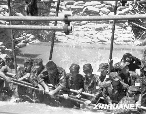 中國(guó)軍人用身體鑄就“人墻”堵噬人的洪水,他們高喊“人在堤在,誓與大堤共存亡”。