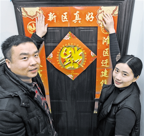 2月15日,在河南省封丘縣李莊新區(qū),搬遷戶田書新(右)和丈夫在貼春聯(lián)。2017年8月,國家發(fā)改委批復《黃河灘區(qū)居民遷建規(guī)劃》,一場涉及百萬人的大遷建開始實施。 李嘉南攝(新華社發(fā))