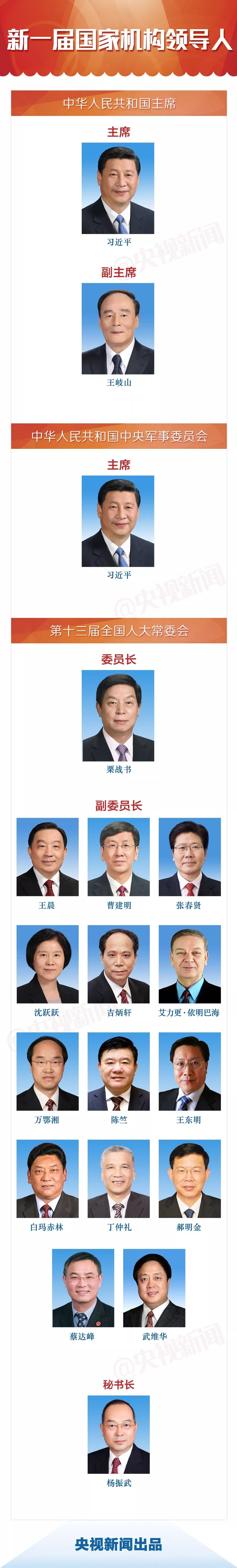 習(xí)近平同志全票當(dāng)選為中華人民共和國(guó)主席、中華人民共和國(guó)中央軍事委員會(huì)主席。