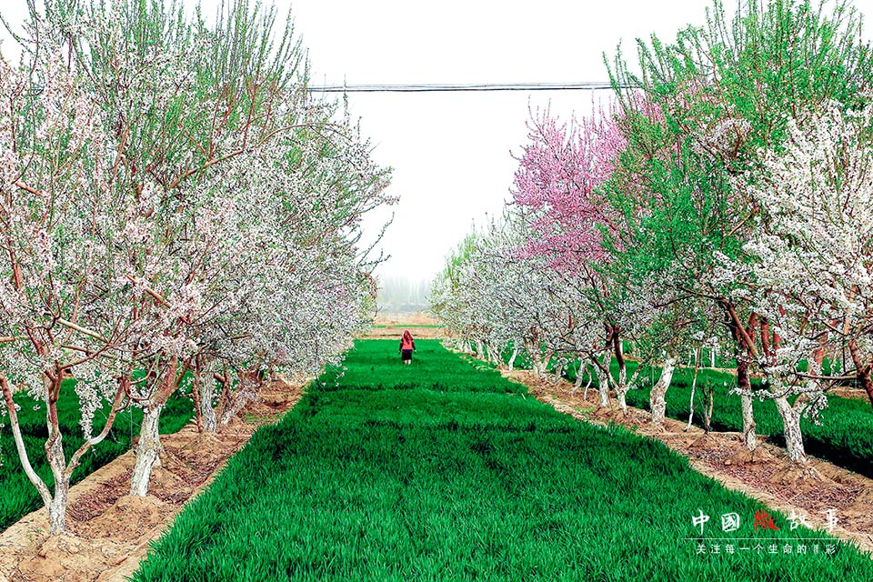 荒地鎮(zhèn)的春天宛如畫,冬小麥的綠,巴旦木花的白,核桃樹春蕾的粉,相互映襯。尹晶晶不禁感嘆,這哪里是“荒地鎮(zhèn)”,這簡直是《三生三世十里桃花》的十里桃林美景!