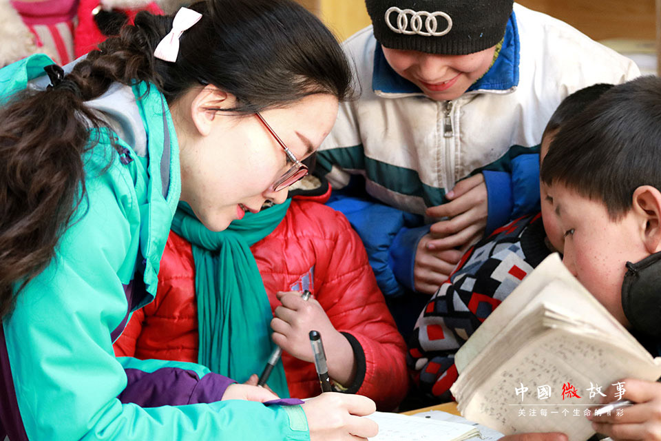 村里的孩子們很聰明,模仿能力很強,寫漢字時能臨摹,但是筆畫順序是亂的。每次上課,尹晶晶都要騰出1小時專門用于糾正孩子們的筆畫。