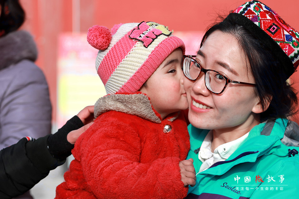 3歲的瑪合婭在村委會玩耍,看到尹晶晶回來張開雙手向她撲過來,狠狠親了她兩下。她媽媽說:“瑪合婭聽說你們要走了,中午吃完飯就來村委會等著你。”尹晶晶感覺嗓子有些堵,忍了一天的淚水在這一刻決堤。