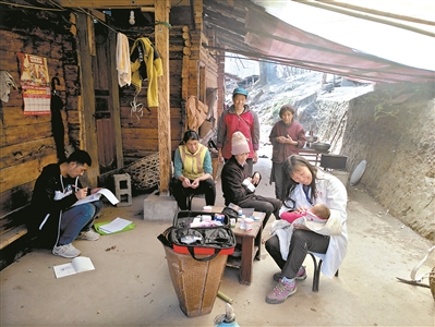 山上的毛毛刺沾滿了她的褲腿,刺到雙腿腳踝處非常疼痛,她不得不用繩子扎緊褲腳,將刺一根根地往外拔。有時實在爬不上去,同行的伙伴拽著她走;一到村里,她一屁股坐在村小組活動室門口的石階上大喘粗氣。一行人到村后發(fā)現(xiàn),真沒村民到場來看病,村小組組長便用喇叭一遍一遍地廣播。聽說廣東的專家到了,一些村民抱著試試看的態(tài)度來了。見這醫(yī)生不僅能看病,還帶來儀器體檢,先來的村民又回去一家家地勸。