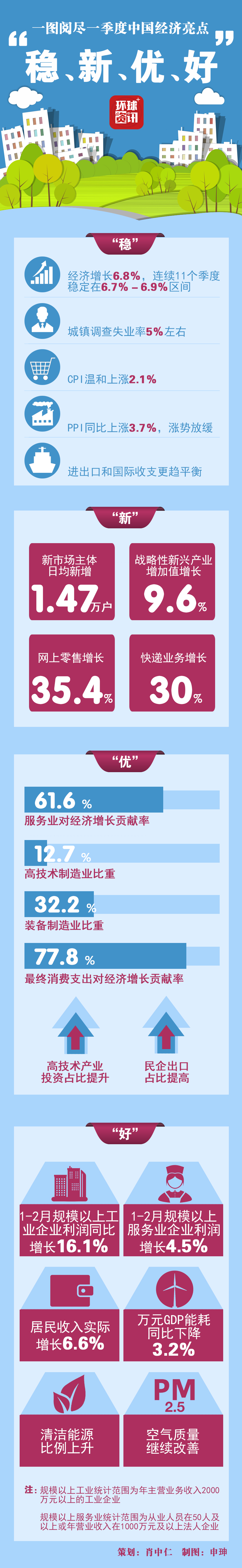 中國國家統(tǒng)計(jì)局17日公布的數(shù)據(jù)顯示,一季度國內(nèi)生產(chǎn)總值同比增長6.8%,經(jīng)濟(jì)運(yùn)行開局良好,呈現(xiàn)出平穩(wěn)運(yùn)行和質(zhì)量效益提升互促并進(jìn)的局面,為全年經(jīng)濟(jì)持續(xù)健康發(fā)展打下了良好基礎(chǔ)。