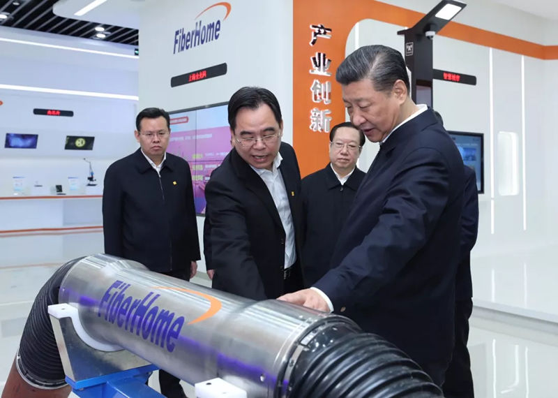 26日上午,習近平在烽火集團有限公司考察時,聽取了武漢市新舊動能轉(zhuǎn)換發(fā)展情況介紹,察看了公司自主創(chuàng)新產(chǎn)品展示,了解企業(yè)轉(zhuǎn)型升級、優(yōu)化調(diào)整產(chǎn)業(yè)結(jié)構(gòu)和加強黨建工作的情況。習近平對大家說,你們所從事的光通信行業(yè)很重要,要建設(shè)網(wǎng)絡(luò)強國,需要你們加快腳步,更快地占領(lǐng)一些制高點。他還指出,武漢高校眾多,很有發(fā)展?jié)摿Γ瞬旁诎l(fā)展中起決定性作用,要把人才隊伍建設(shè)好。